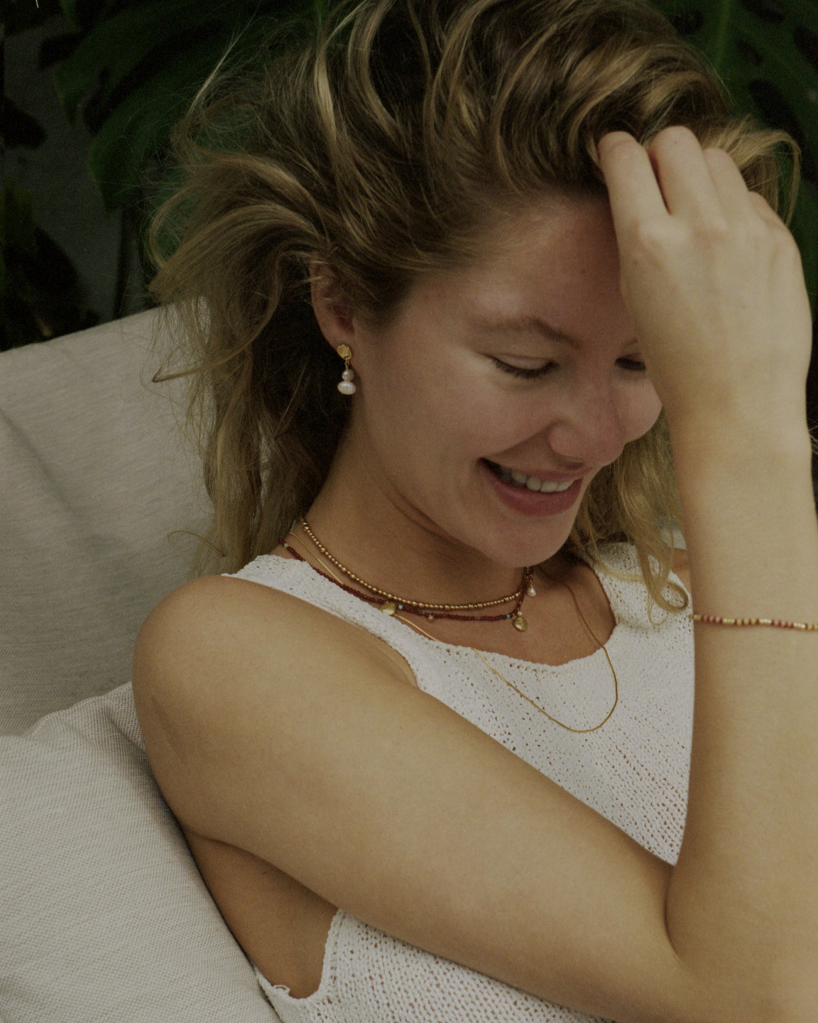 BALL is all about shape, shine and playful tradition. Gemstone beads are spaced with tiny glass details that echo the classic knotting technique — giving each piece a handcrafted, timeless feel. With a wide palette of colors and styles, Ball has become a signature series to stack, collect and wear your way.- Crafted in brass with 18-karat gold plating + e coating