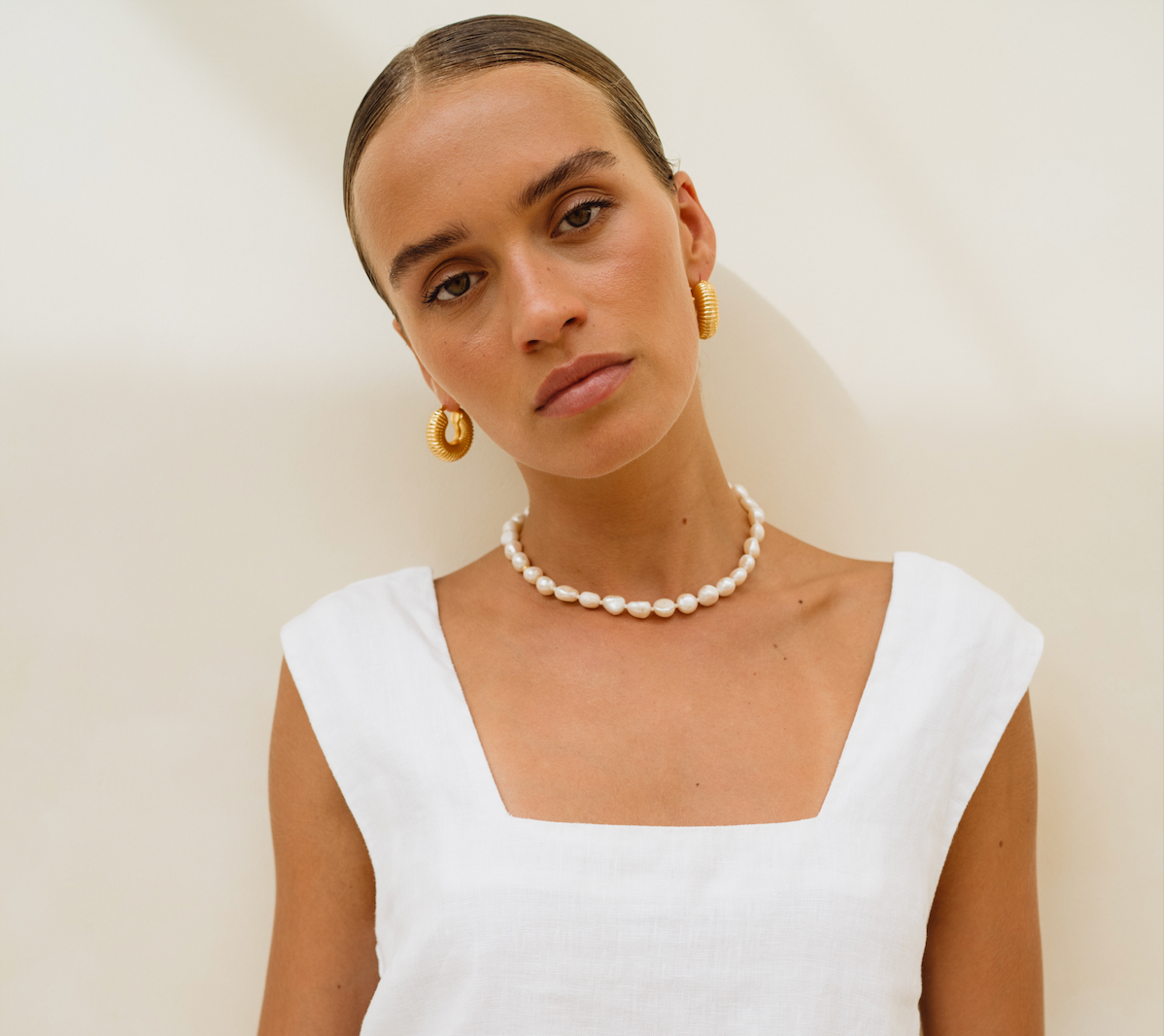 Textured like gentle waves, the Ripple Hoop in gold add a subtle shimmer and an elegant touch to your look.