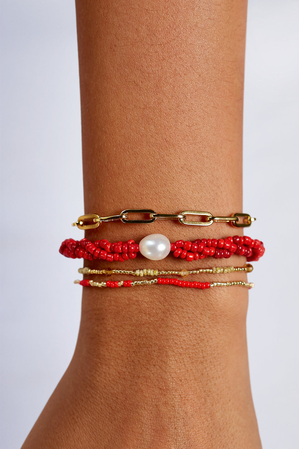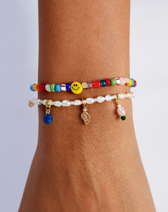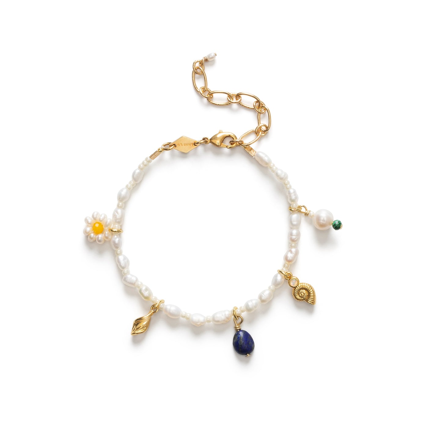 The bracelet to end all bracelets. Could be. The combination of the detailed chain, the five beautiful crafted shell pendants and the delicate freshwater pearl ending the bracelet gives the Summer Treasure bracelet an instant WOW factor. Combine with your classic ANNI LU styles.