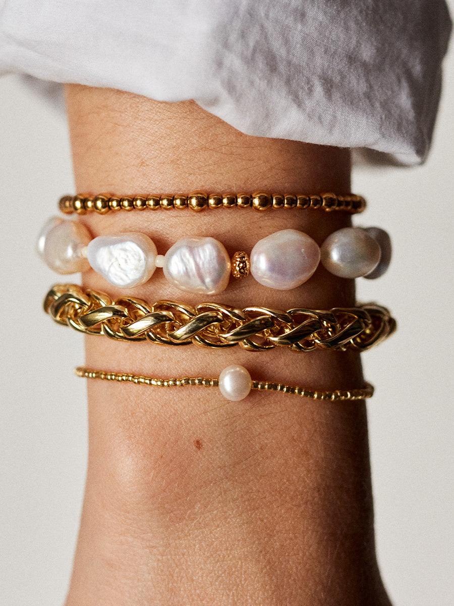 STELLAR is surfer-slang for something truly extraordinary — just like this series of luminous pearls and golden details. Effortless, with a hint of magic.- Crafted in brass with 18-karat gold plating and anti-tarnish e-coating