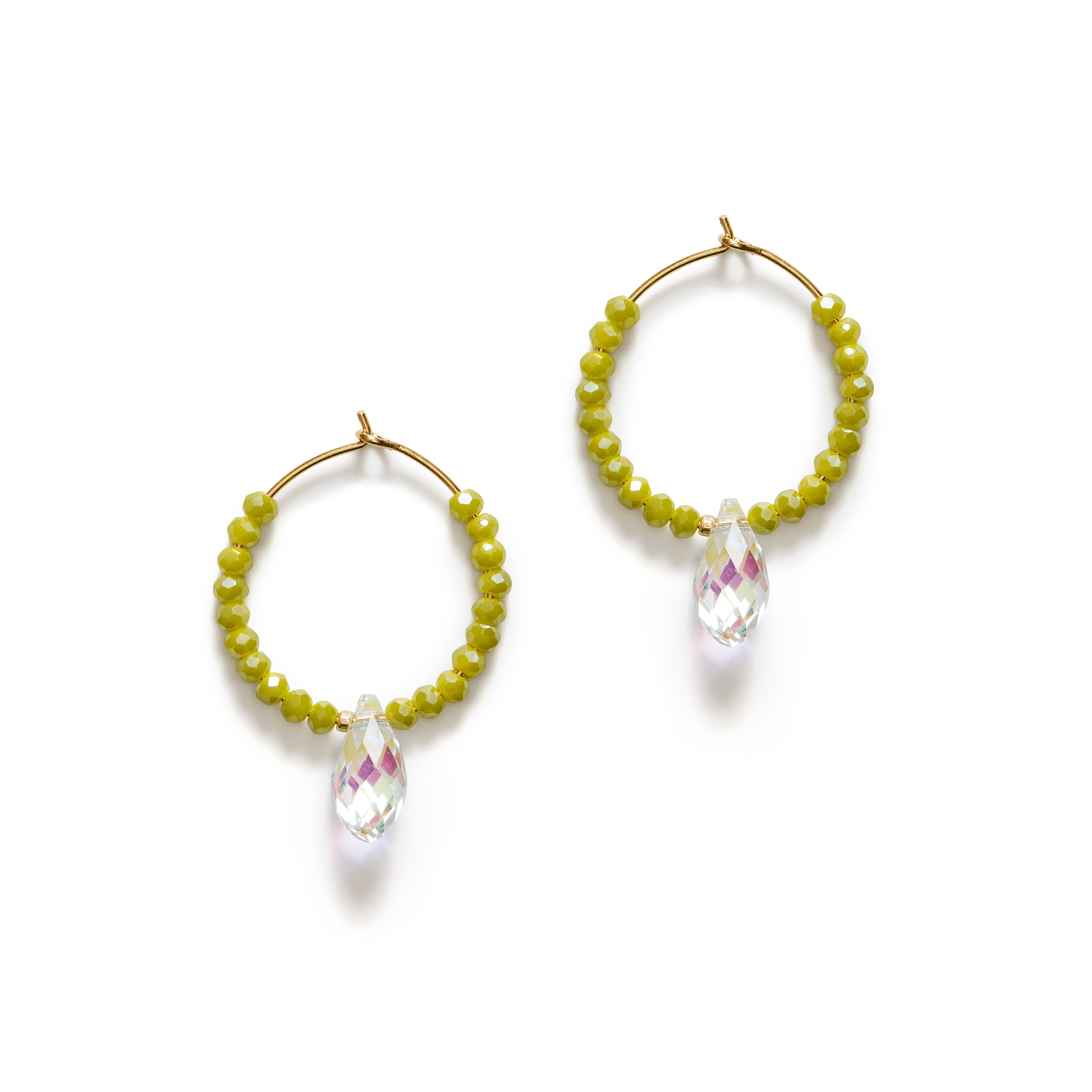 Soft greens with crystal sparkle in a sleek hoop. Cosmic Cactus brings you instant desert cool with just the right amount of glam.