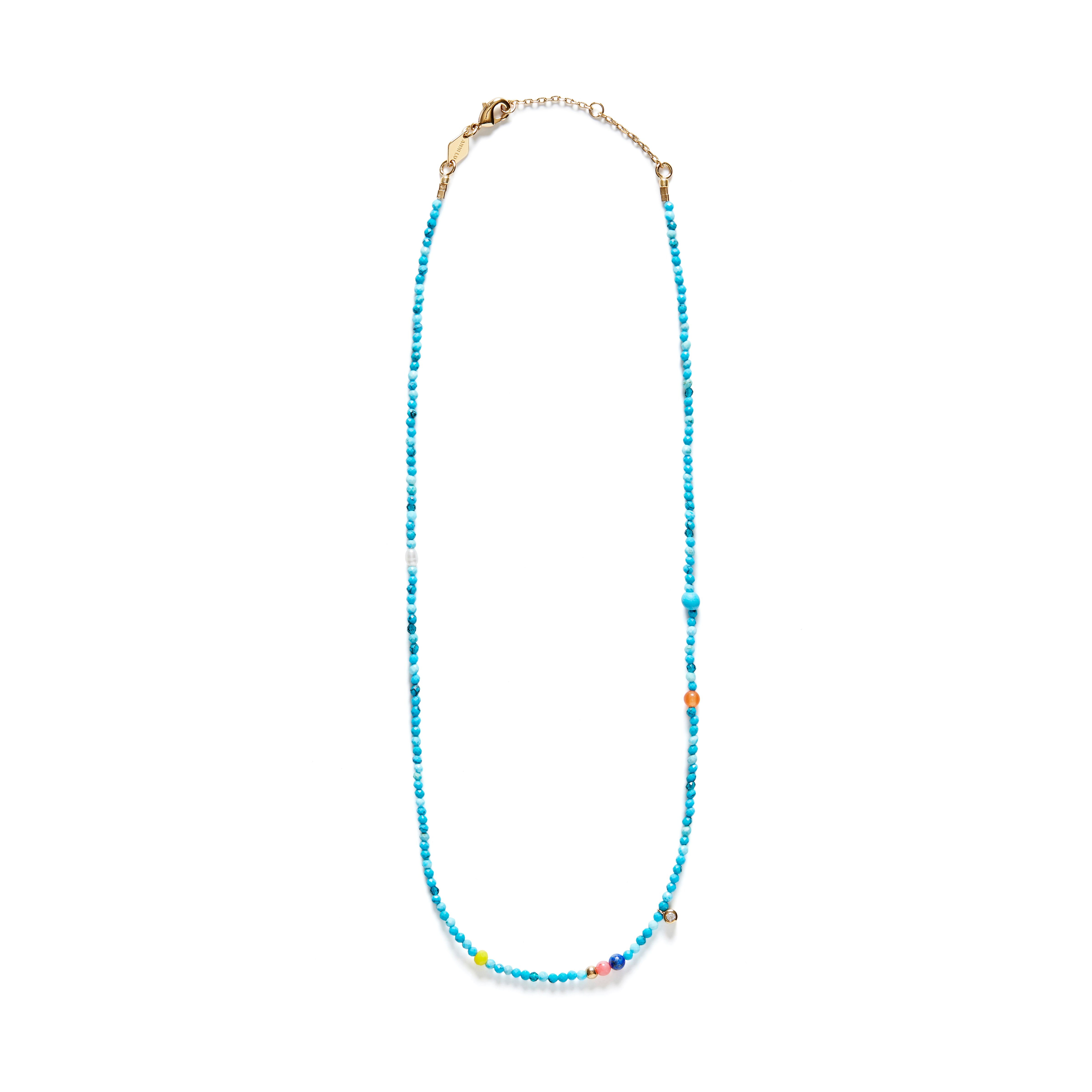 The Dotty necklace has the perfect 70s turquoise color, infusing positive energy and a sense of joy. We have added playful dots to the necklace, aiming to bring harmony to your life.