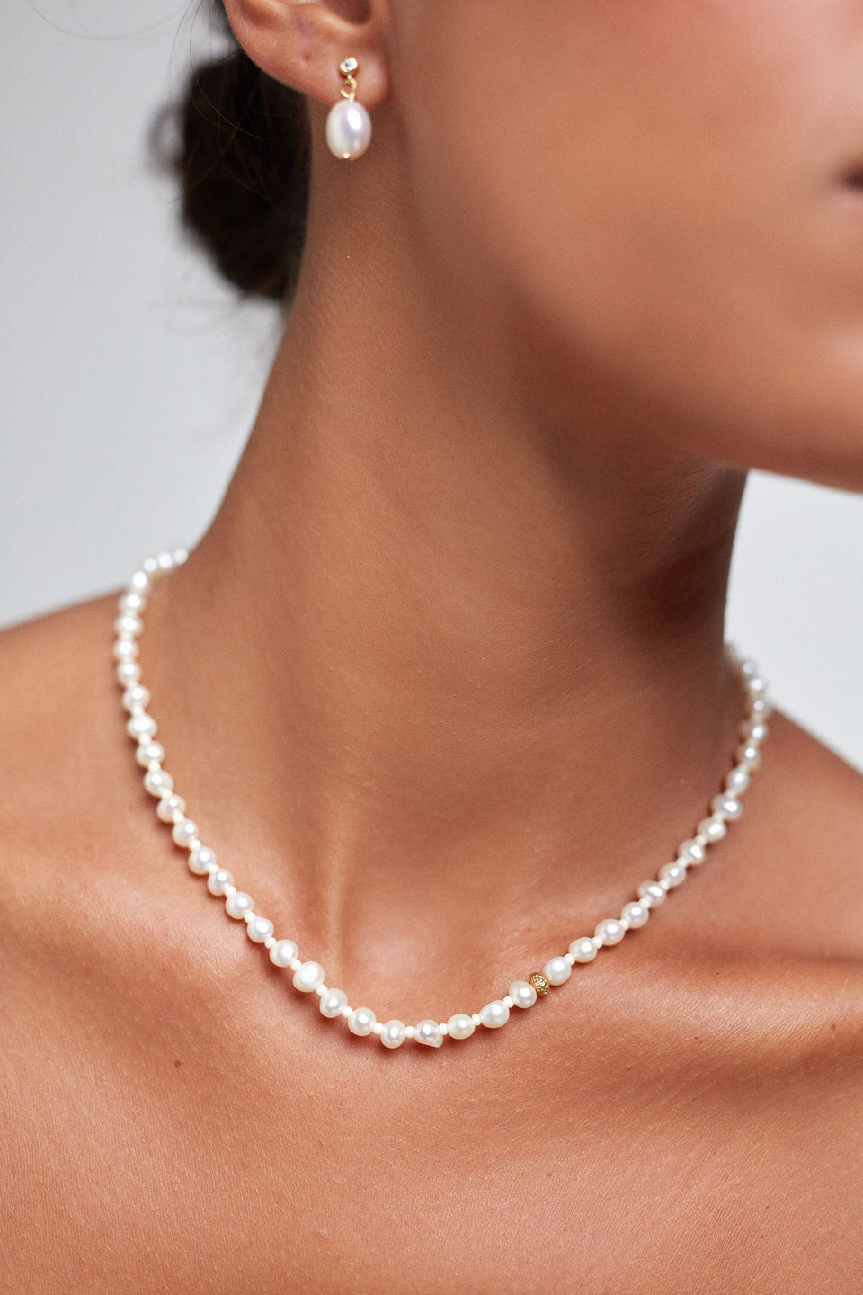 STELLAR is surfer-slang for something truly extraordinary — just like this series of luminous pearls and golden details. Effortless, with a hint of magic.- Crafted in brass with 18-karat gold plating and anti-tarnish e-coating