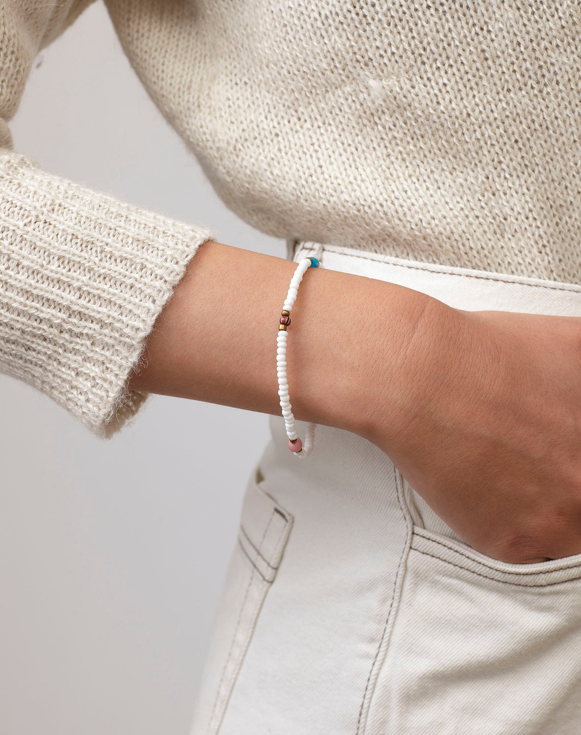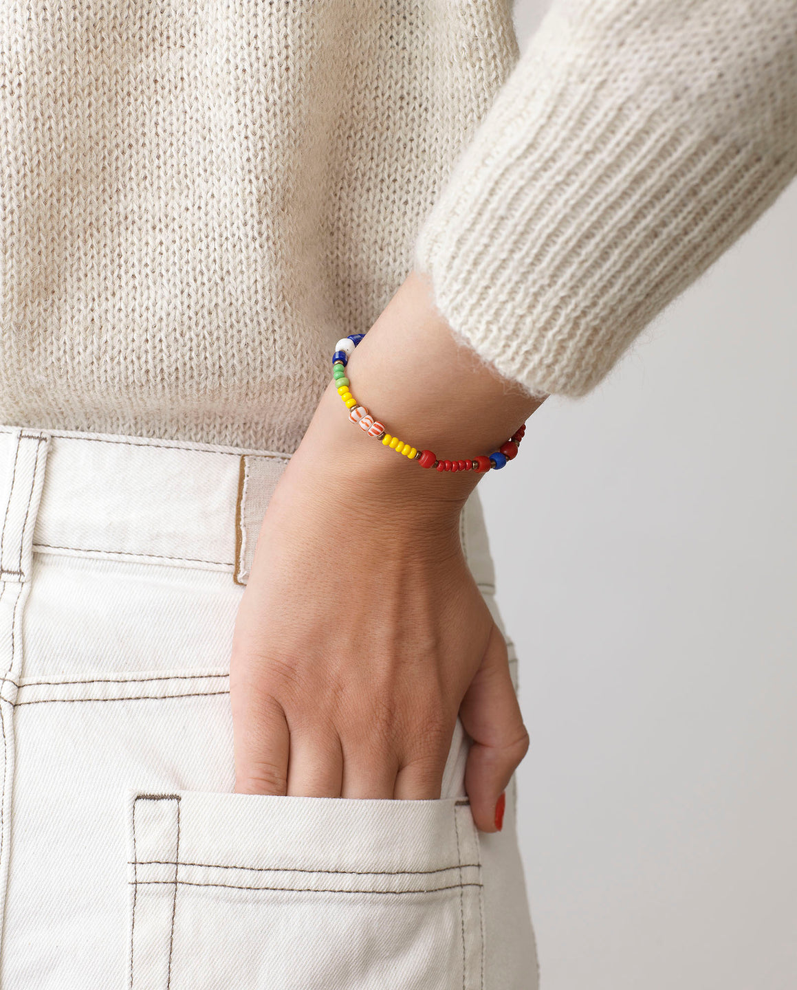 Vibrant and colourful bracelet with small details to finish your casual, everyday look. Designed by ANNI LU designer Helle Vestergaard Poulsen and made with love by Abigael, Agnes, Hellen, Judith and Emily, five brave women trying to reach their hopes and aspirations in life - for both themselves and their children (learn more of their stories below). Perfect to stack with similar ANNI LU styles or wear it solo.