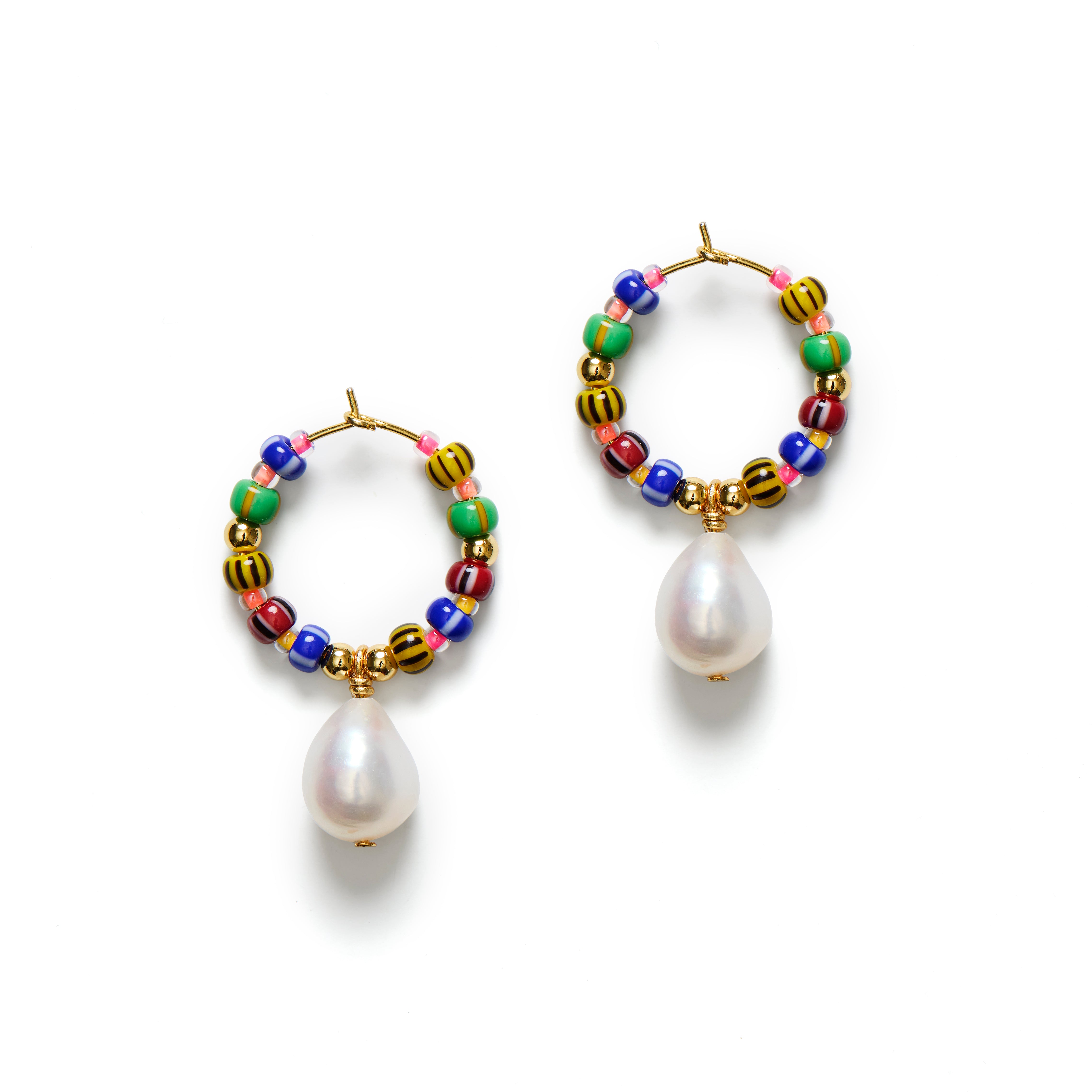 A riot of colors and pearls in a bold hoop. Magic Moments is the earring equivalent of your favorite party — loud, fun, and impossible to forget.