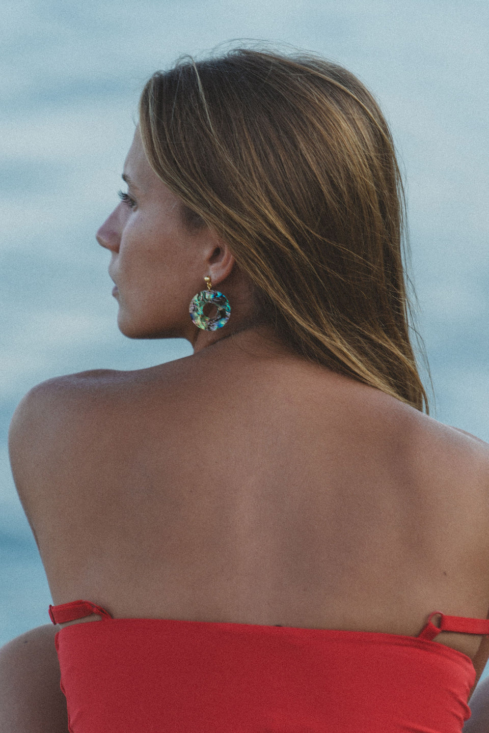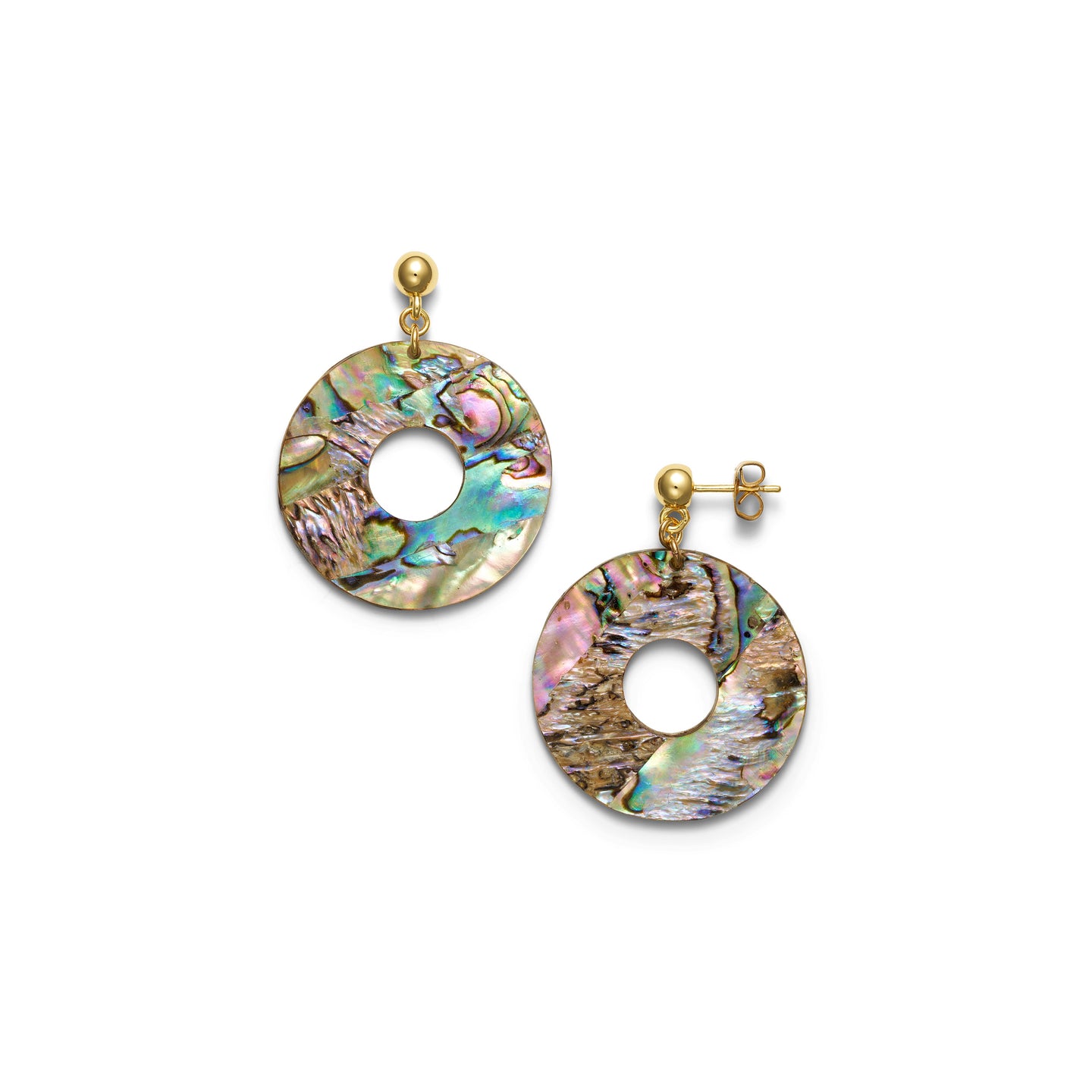 The Oasis Earring is inspired by shimmering waves and features an Abalone pendant with changing colors that capture the feeling of the sea and the movement of water. The oceanic hues of golden lagoons make these earrings an elegant statement piece.