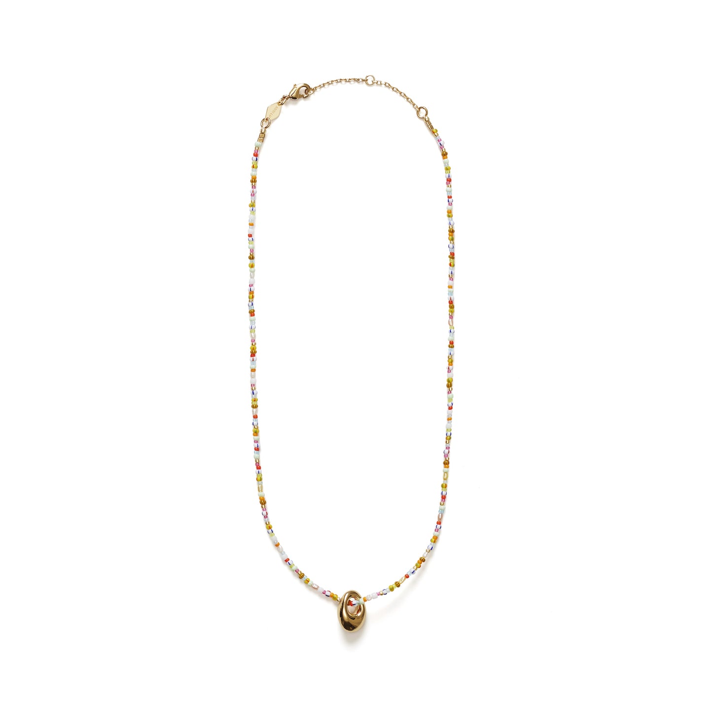 - Detailed in glass beads, cultured freshwater pearls and a golden pebble